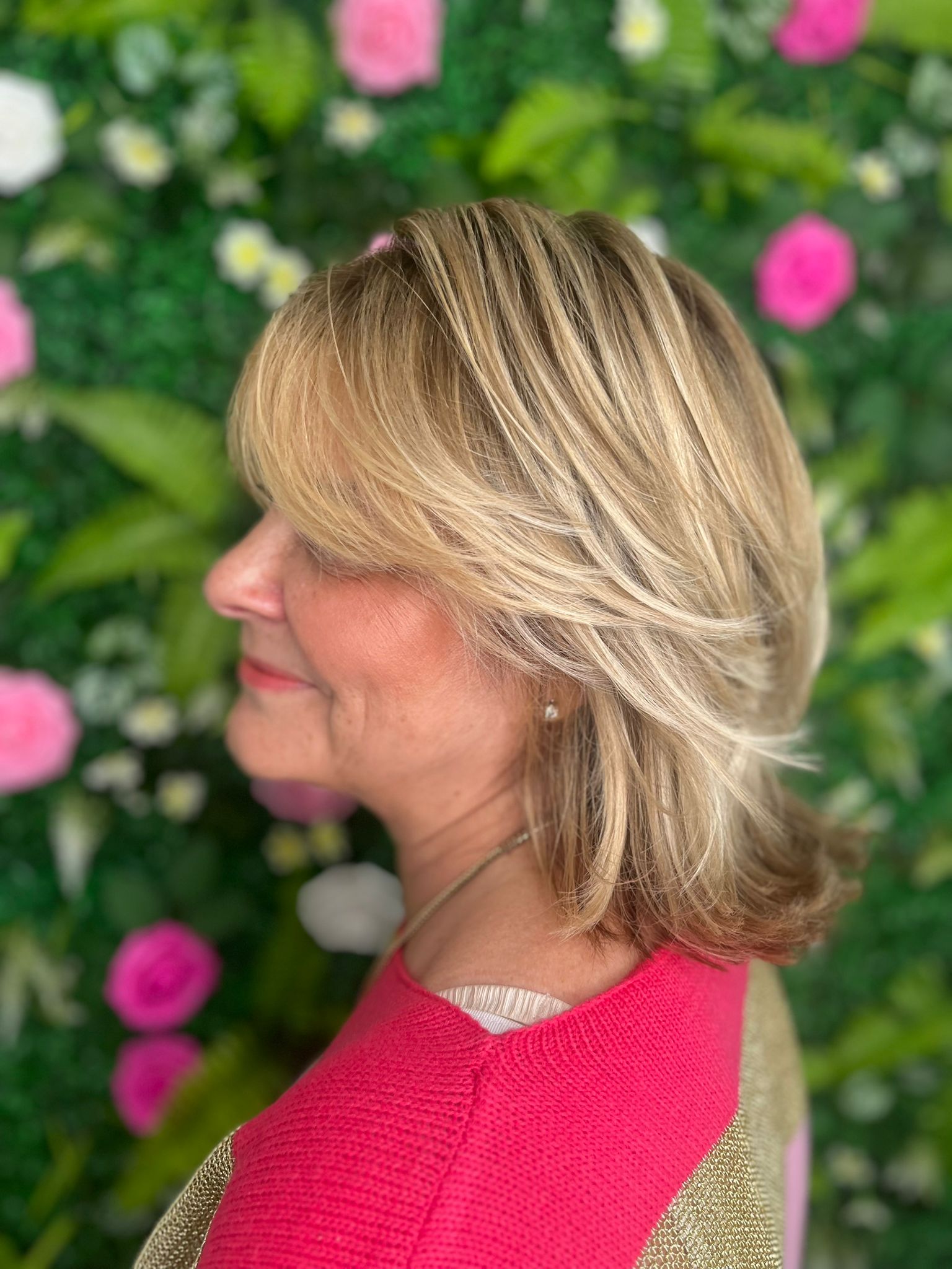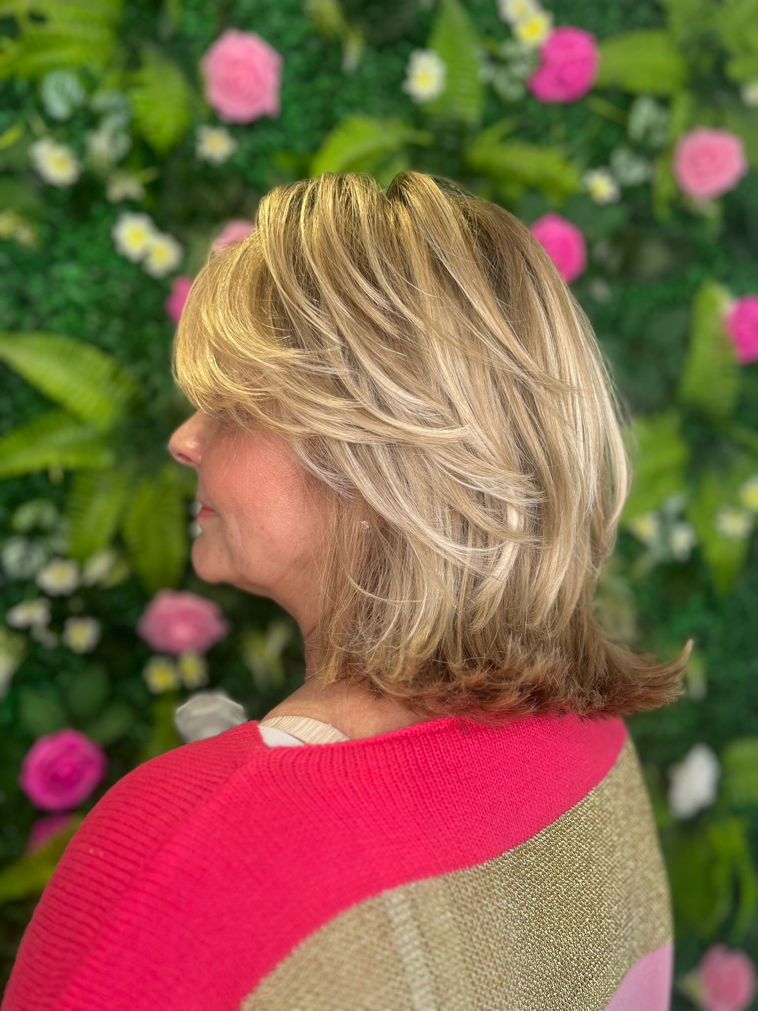 We often recommend Liberty for clients wanting to freshen their colour without committing to a full head of highlights. By painting the lightener directly onto the hair, we can frame the face and add a sprinkling of brightness exactly where it’s needed. This placement brings light to the features and gives a soft, summery glow that looks completely effortless.